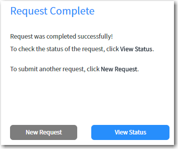 12. Click Submit Request . The request is submitted and the Request Complete panel opens.