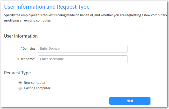 To use the Employee App Provision Request wizard to update the operating system and/or applications on an existing computer, perform the following steps.