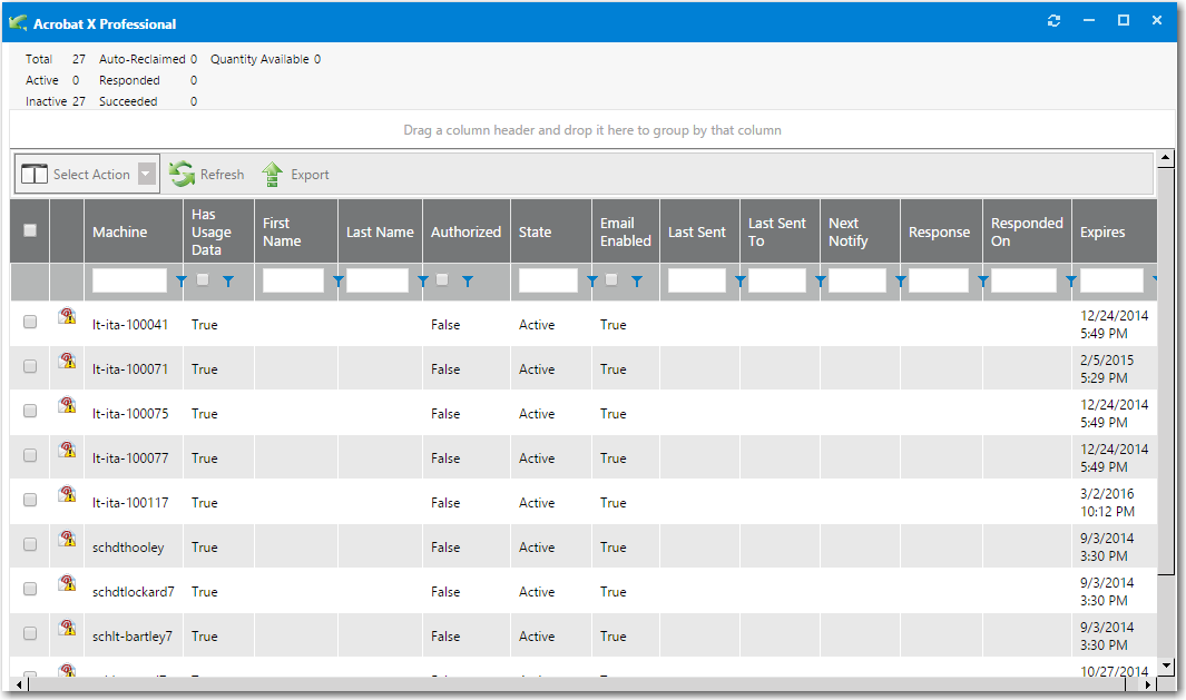 - View the items in the license reclamation grid, which is where the records and responses to the campaign are tracked.