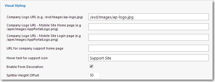 • This field lists the location of the company logo that appears at the top left of all App Portal screens. By default, the location of the App Portal logo is listed in this field: